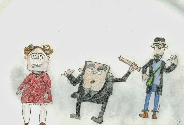 | Dibujo de Matilde Laires con el que consiguió el segundo premio en el concurso de diseño de las marionetas de A Suspeita, pinchad aquí para ver al ganador de tan simpático concurso. |